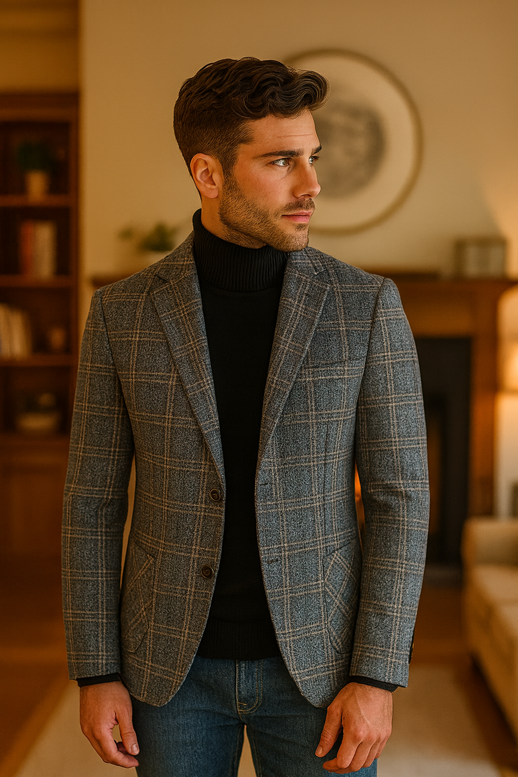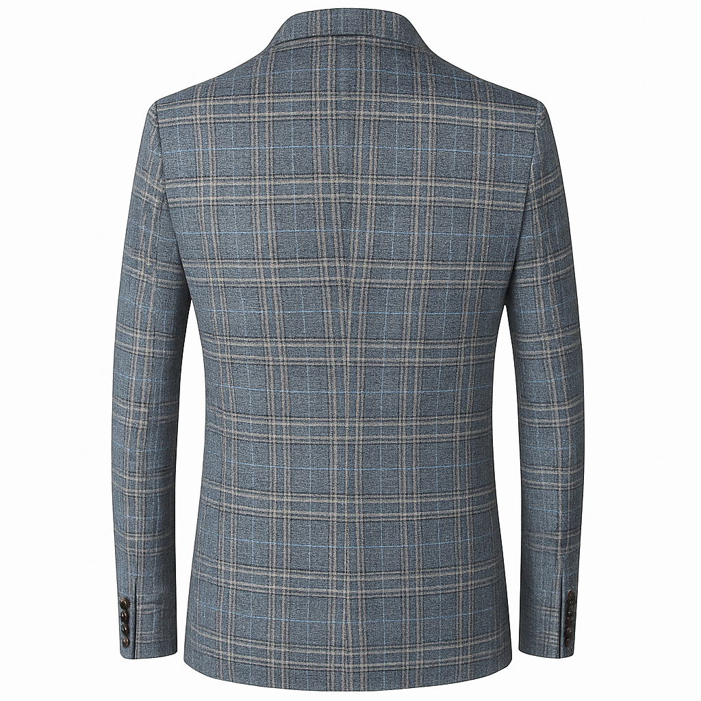 Ein Blazer für den Mann, der sich abheben möchte – ohne zu übertreiben. Das karierte Gewebe, reich an Details und Tiefe, verleiht dem Alltagslook sofort Charakter und macht ihn sowohl fürs Büro als auch für den Abend ideal. Die leichte, aber stabile Struktur sorgt für eine saubere Linie und betont die Figur, ohne steif zu wirken.
